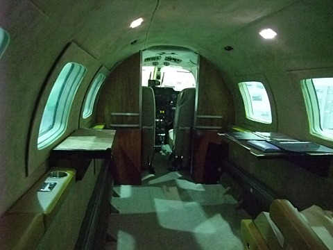 内装はいろいろ変えられるようで、 展示室の機体には小さな席が3つほど取り付けられていた。 患者輸送であれば、ベッドにしたり、 応接間にもなるとか。
